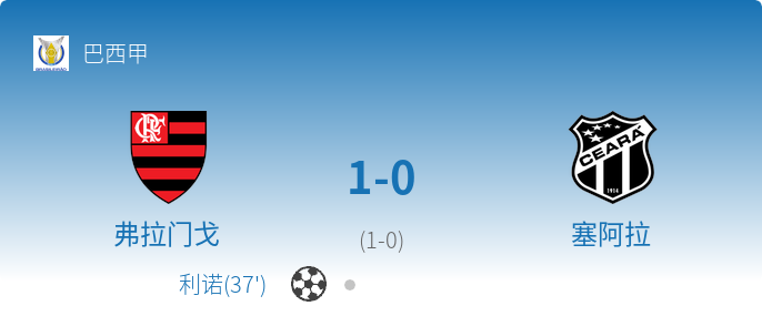 比赛概述在2025年12月4日的巴西甲第37轮比赛中,塞阿拉坐镇主场迎战弗拉门戈。全场比赛,弗拉门戈凭借第37分钟的制胜进球,以1-0的比分客场战胜塞阿拉,全取三分,巩固了积分榜上的位置。