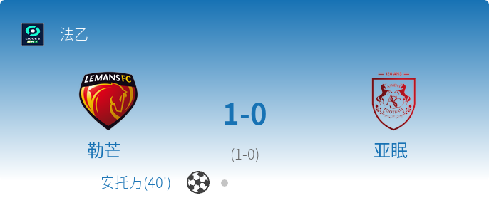 比赛概述在2025年12月6日凌晨3点进行的法乙第16轮比赛中,亚眠坐镇主场迎战勒芒。整场比赛,勒芒凭借安托万在上半场的头球进球,牢牢掌控局面,最终以1-0客场战胜亚眠,全取三分。