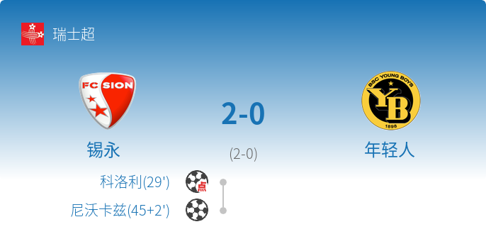 比赛概述北京时间2025年12月7日23:30,瑞士超第16轮展开较量,年轻人主场迎战锡永。全场比赛,锡永凭借科洛利的点球和上半场补时阶段的进球,以2-0战胜年轻人,从客场带走三分。
