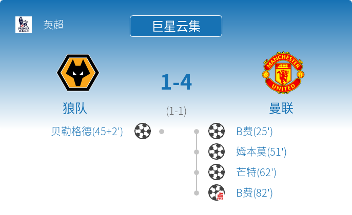 比赛概述2025年12月9日凌晨4点,英超联赛第15轮在老特拉福德球场打响,曼联主场迎战狼队。经过90分钟激战,曼联凭借多点开花,以4-1的比分战胜狼队,全取三分。