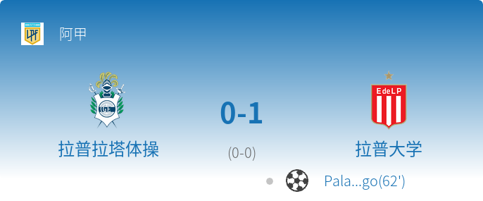 比赛概述在北京时间2025年12月9日凌晨进行的阿甲季后赛半决赛中,拉普拉塔体操坐镇主场迎战拉普大学。全场比赛,双方拼抢激烈,但拉普大学凭借第62分钟的制胜进球,以1-0客场击败对手,在晋级决赛的道路上占据先机。