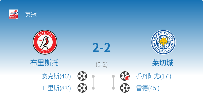- 第83分钟:布里斯托队麦克罗伊助攻E.里斯头球破门,扳平比分2-2。