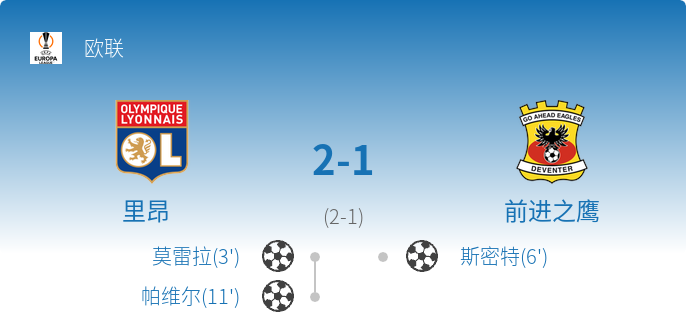 比赛概述2025年12月12日,欧联联赛阶段第6轮,里昂在主场迎战前进之鹰。比赛开局激烈,里昂凭借早期进球确立优势,最终以2-1击败前进之鹰,全取三分。