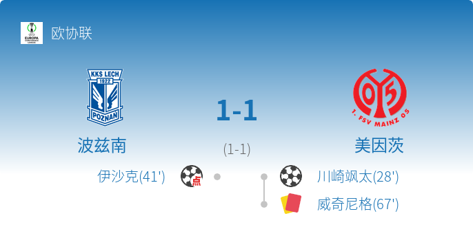 - 第86分钟:美因茨换人,马隆尼上场换下川崎飒太;波兹南换人,穆蒂尼奥上场换下古格尔。