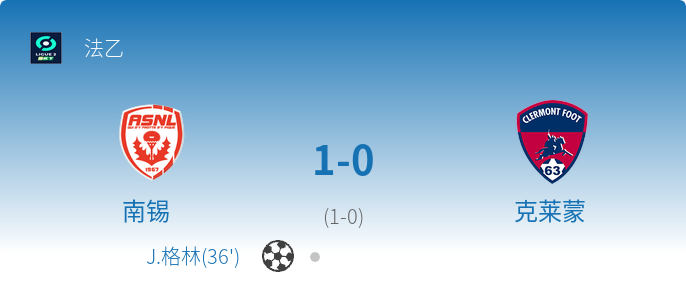 南锡主场1-0小胜克莱蒙,法乙第17轮收获关键三分