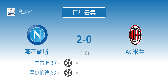 意超杯半决赛:那不勒斯主场2-0完胜AC米兰晋级决赛