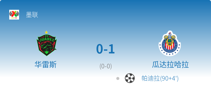 比赛概述 2026年1月14日,墨西哥联赛第2轮,瓜达拉哈拉客场挑战华雷斯。整场比赛双方互有攻守但均未能破门,瓜达拉哈拉在伤停补时第4分钟打入制胜球,最终以1-0绝杀华雷斯,客场全取三分。